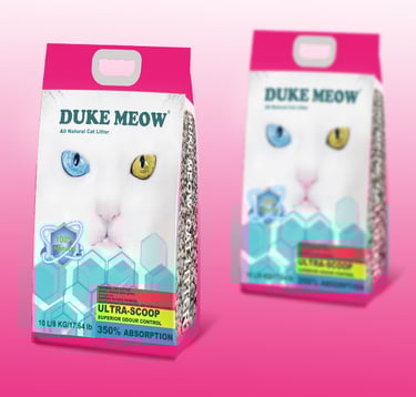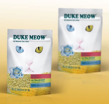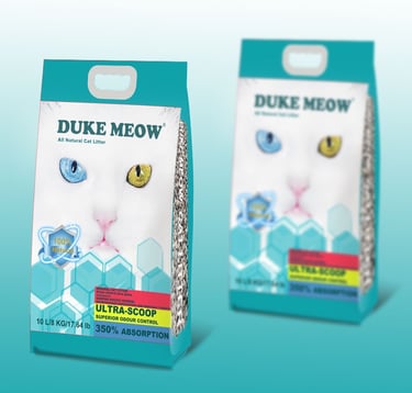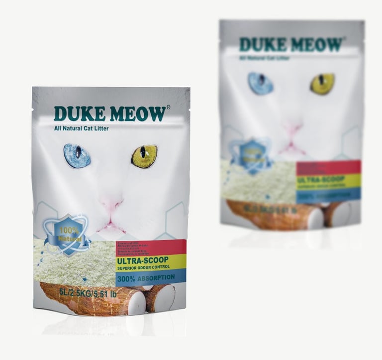 Dukemeow Cassava Cat Litter provides superior odor control and absorbs moisture quickly, all while being gentle on the environment. It’s the natural, eco-friendly choice for your cat’s health and comfort.